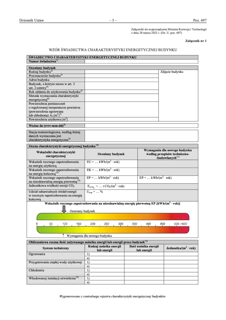 Inwestor będzie zobowiązany załączyć świadectwo charakterystyki energetycznej do zawiadomienia o zakończeniu budowy obiektu budowlanego lub do wniosku o udzielenie pozwolenia na użytkowanie (obowiązek wszedł w życie z dniem 28 kwietnia 2023 r.). Z obowiązku tego wyłączone są domy do 70 m2 zabudowy do własnych celów mieszkaniowych